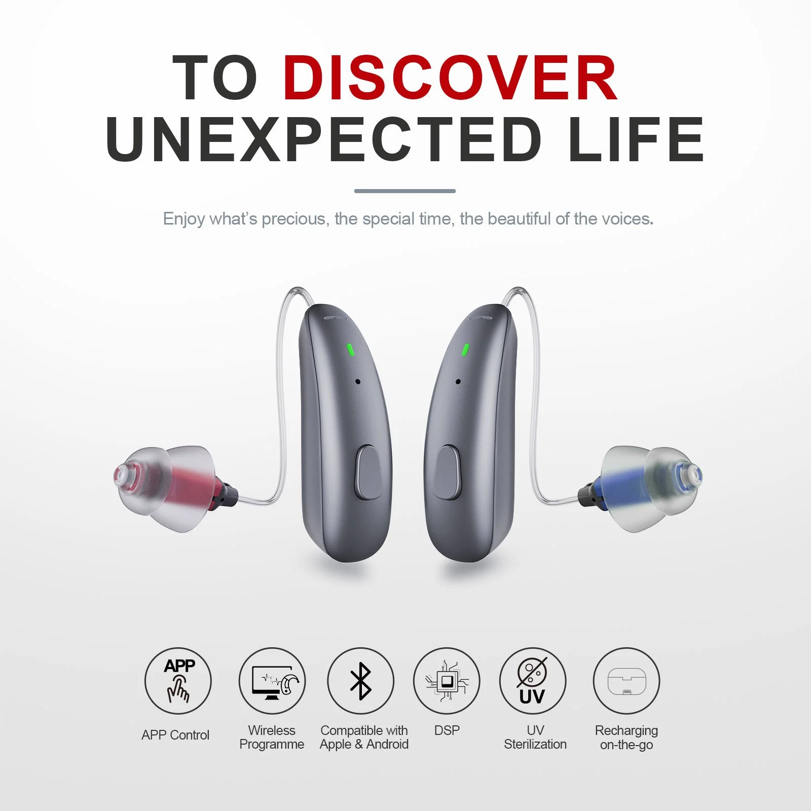 Personalize your hearing aid with realtime adjustments from our expert audiologists, all from the comfort of your own environment.